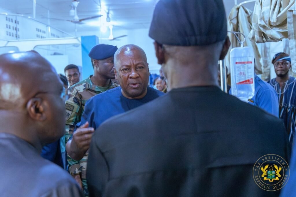 President Mahama, accompanied by Chief of Staff Julius Debrah, expressed his sympathy to the survivors and assured them that the government would cover their medical expenses.