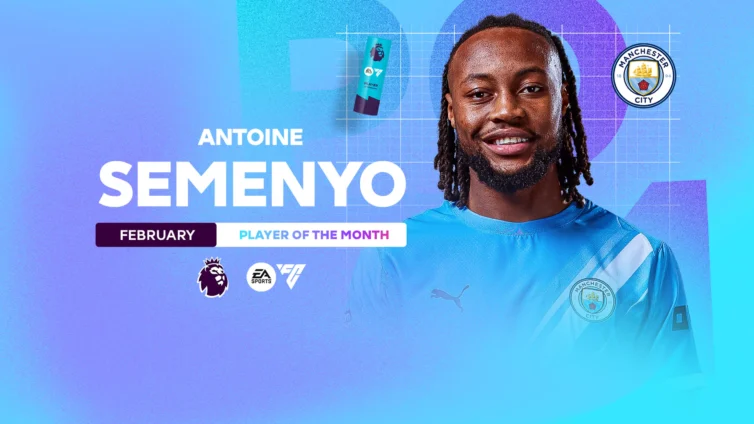 Antoine Semenyo, an attacker for Manchester City, has been named the Premier League Player of the Month for February after an outstanding first full month with the club following his January move from AFC Bournemouth.