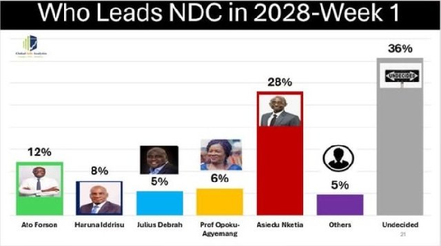 A new survey by Global InfoAnalytics indicates a tightening race among leading contenders for the National Democratic Congress (NDC) flagbearer position ahead of the 2028 elections.