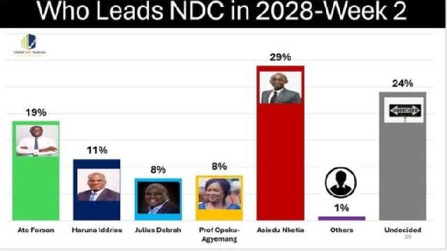 A new survey by Global InfoAnalytics suggests a tightening race for the National Democratic Congress (NDC) flagbearer position ahead of the 2028 elections.